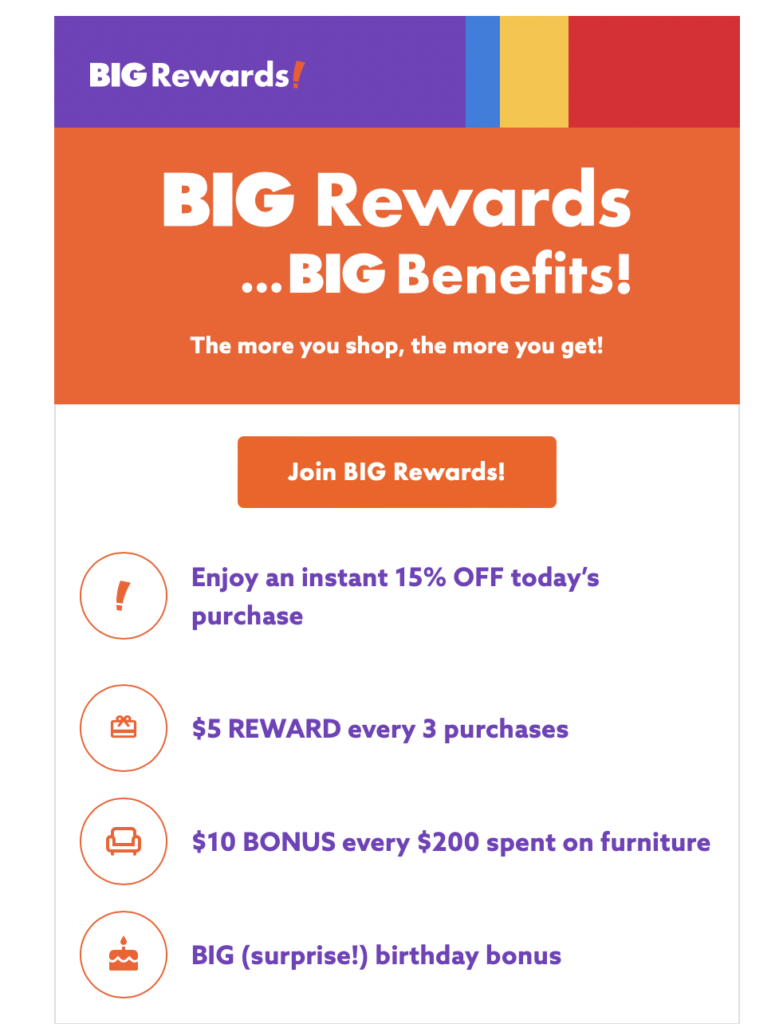 - Furniture Bonus: Earn up to a $50 Reward on your next indoor or outdoor furniture purchase