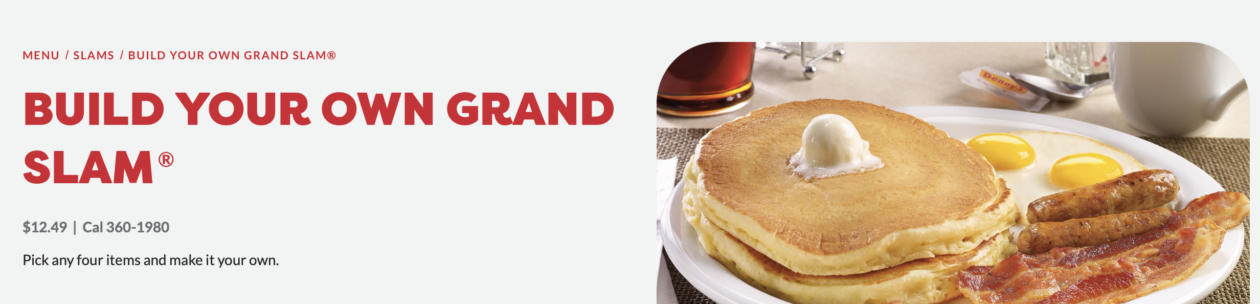 Find Military Discounts →The “Build Your Own Grand Slam” lets you choose any four of the following menu items: