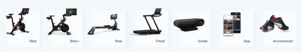 Peloton is known for its immersive in-home cycle equipment and brings a boutique fitness studio into homes and state-of-the-art design combined with streaming classes.