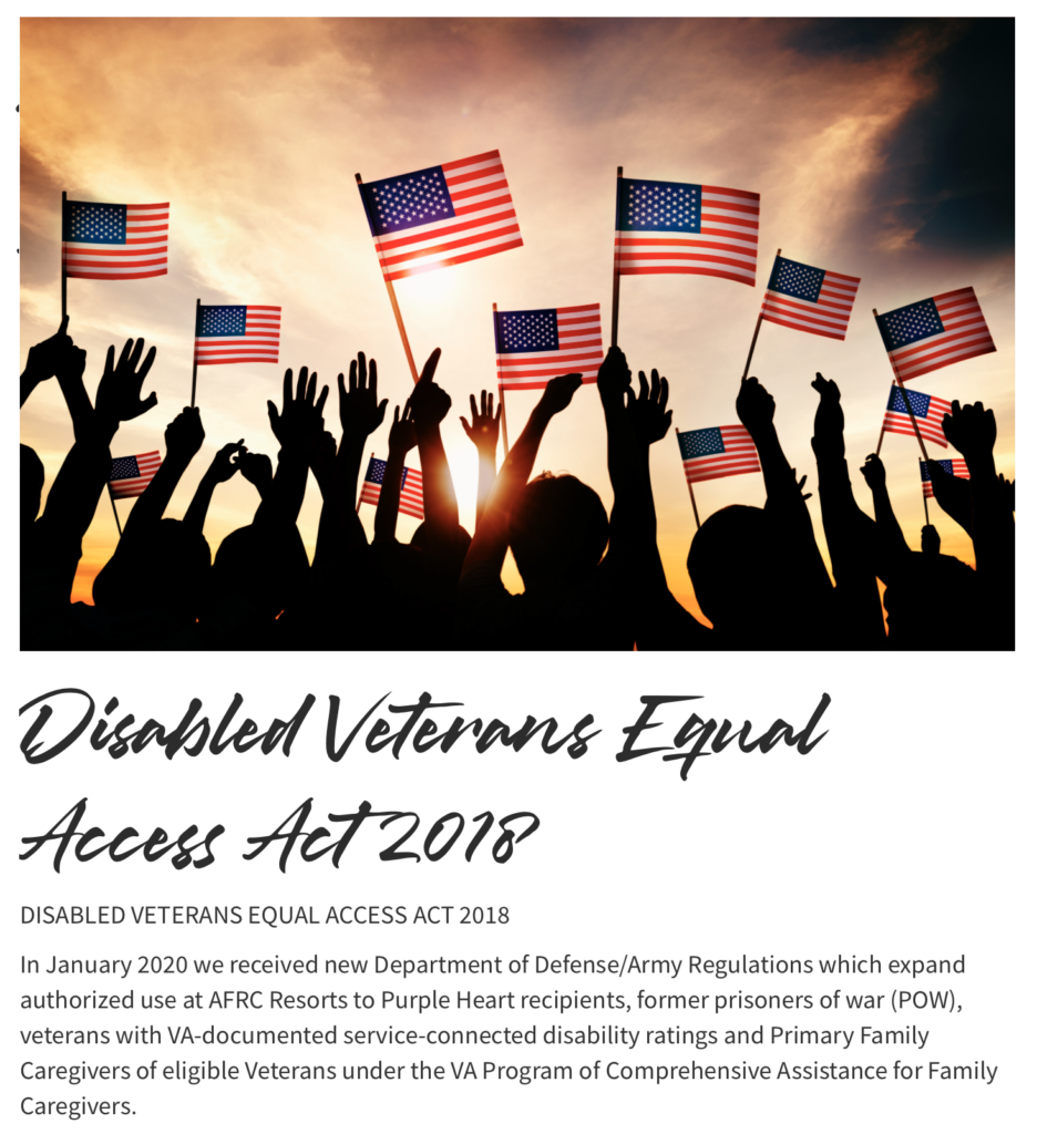 Proof of honorable discharge is required with a copy of a current DD-214 form. Rooms booked with this special promotion will pay the Category 3 rate. You may sponsor up to three rooms if you qualify for this promotion. Room rates are based on two adults occupying a standard room and four adults occupying the suites. Add $15 per additional adult ages 18 years or older. Please call the Reservation Office at 888-593-2242 to book your reservation.