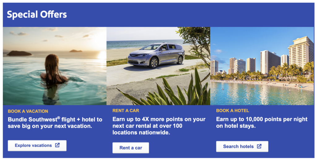 Southwest Airlines specializes in air travel, but they also partner with other agencies to help accommodate travelers’ needs as far as vehicle rentals and hotel stays.